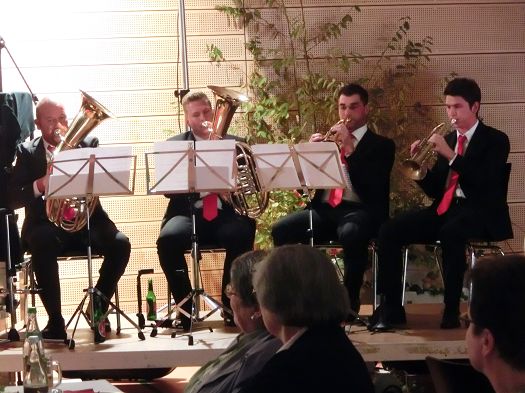 Die Moderatoren des Abends waren Angelika Thalmeier und Andreas Bauer, Dirigent des Chores wie immer Jakob Högl. Ein extra ins Leben gerufenes Bläserquartett, "D`Ohrwuzeln", spielten abwechselnd mit dem Chor, Klassiker wie "New York, New York", "My way" oder "Marina". Auch das anspruchsvolle Programm des Chores mit Songs aus "Cats", von den Beatles, "O sole mio" und vielen weiteren Klassikern begeisterte die Besucher. In den Pausen servierten die Chormitglieder dem Publikum verschiedene Gänge eine Menus, das großen Anklang fand, so wie der gesamte Abend sehr gut bei den Besuchern ankam.