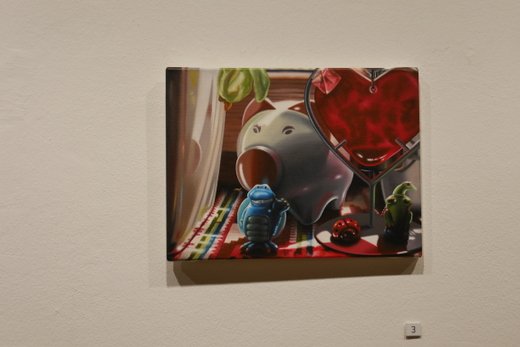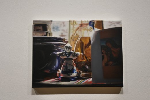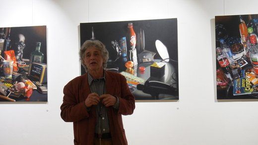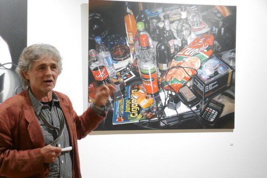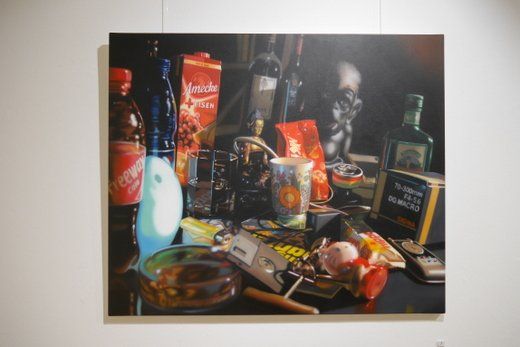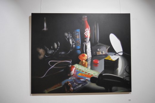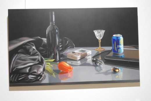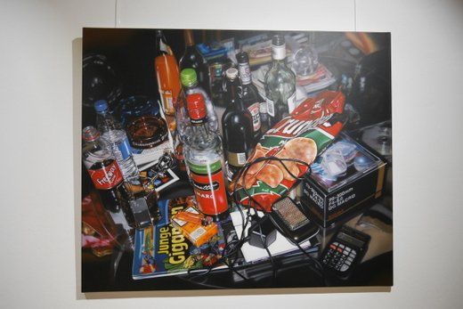 Fotorealismus ist der Fachbegriff, doch was den Inhalt betrifft, ist Scholter wieder ein Klassiker. Das Stillleben oder nature morte, befasst sich wie gesagt mit stillen oder eben toten Gegenständen. Im Klassiker wird oft die Vergänglichkeit auf die Leinwand gebannt, die gängigen Lehrstoffe an den Akademien, halten sich noch immer gerne daran. Christoph Scholter bricht hier aus, seine Arrangements erzählen direkt von seinem Alltag. Der Blick auf den Wohnzimmertisch nach durchzechter Nacht, das verträumte Sortieren der Jugendzeit mit Spielzeug und Romanfiguren, oder ganz aus der Leinwand heraus, weiß lackierte Schwimmflügel als Skulptur.