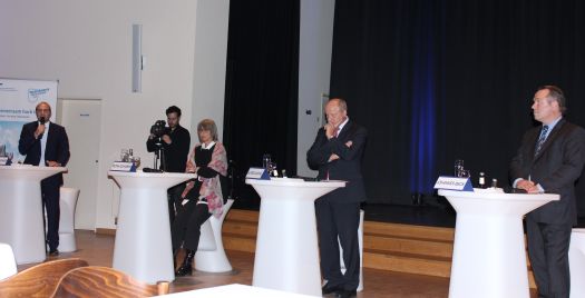 In der gut einstündigen Podiumsdiskussion kamen zunächst zu Wort der Präsident der Vereinigung der Bayerischen Wirtschaft Alfred Gaffal, MdB Florian Ossner, die Stadtplanerin und Architektin Petra Schober sowie der Vorsitzende des BDS-Niederbayern, Johannes Beck. Als erster äußerte sich MdB Florian Ossner zum Thema Verkehrsanbindung: „Mainburg ist in Sachen Infrastruktur in einer hervorragenden Ausgangssituation“.