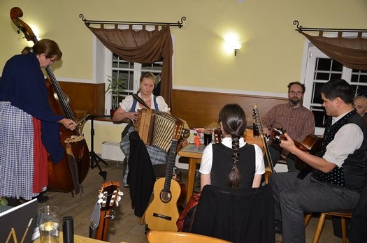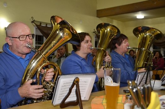 Neben Kargers selbst getexteten und selbst komponierten Lied „Heit wered a Musi g’macht“ zeigte das Trio im gut gefüllten Saal des Alten Wirts in Rohrbach, dass es noch so manch eingängiges Lied in seinem Repertoire hat. Ihr Können brachten aber auch die „Z'samgwürfeltn“, Gitarrisch-Narrisch und Andrea Moser zu Gehör. Gabi Hamberger mit ihrer Steirischen spielte in bewährter Manier mit Moderator und Verserldichter Martin Lengfelder. Jener dichtete extra für diesen Stammtisch: „Dea Oktobermonat is vorbei, drum san mia heit wieda an da Reih. Da November mit seine ad:n Nebetog, dea wo jetz grod sein Einzug hod, dass d’Nebeschwadn grod so fliang, von dem lass ma uns net unterkriangn. Es gibt an Radsch und ebbas Z#lache, unsere Musikanten wean scee Muse macha“. Und genau so war es an diesem Abend dann auch!