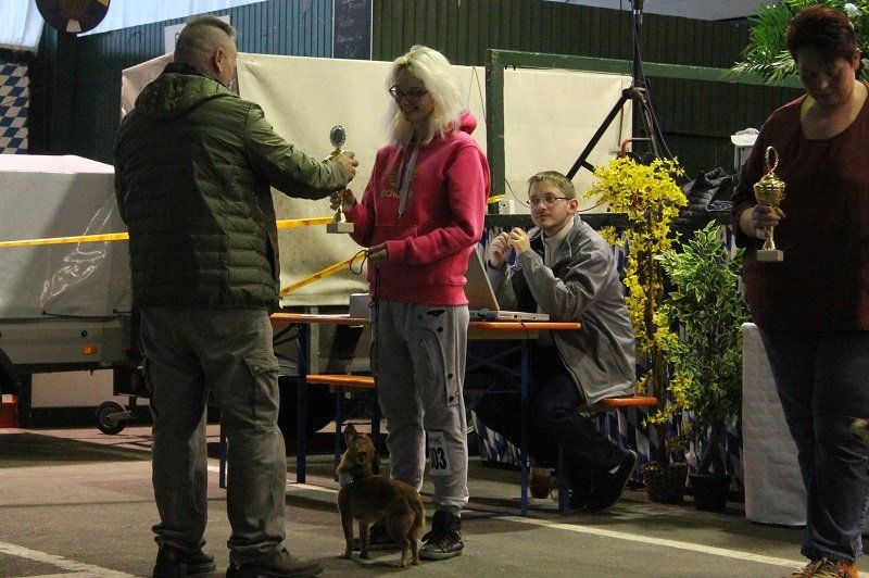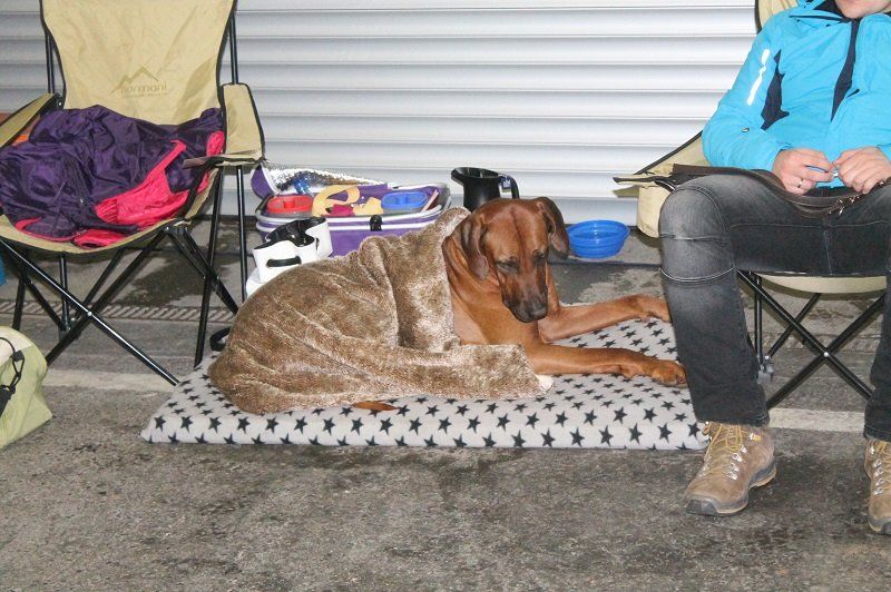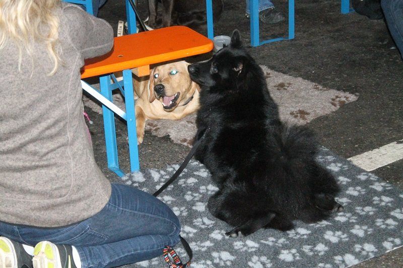 Die Hunde vertrieben sich, meist entspannt am Tisch ihrer Besitzer, im Spiel mit dem „Nachbarn“, oder mit einem Happen die Zeit zwischen den Wettbewerben. Für das Leibeswohl von Herrn und Hund war gesorgt, für den Mensch gab es Kaffee und Kuchen, oder kleine Snacks, für den Hund was zur „Zahnpflege“. Die Auswahl war gerade für den Vierbeiner recht groß, Fischkopf, Rehrücken und Rinder- oder Schweineohren gehörten zu den angebotenen, getrockneten Delikatessen.