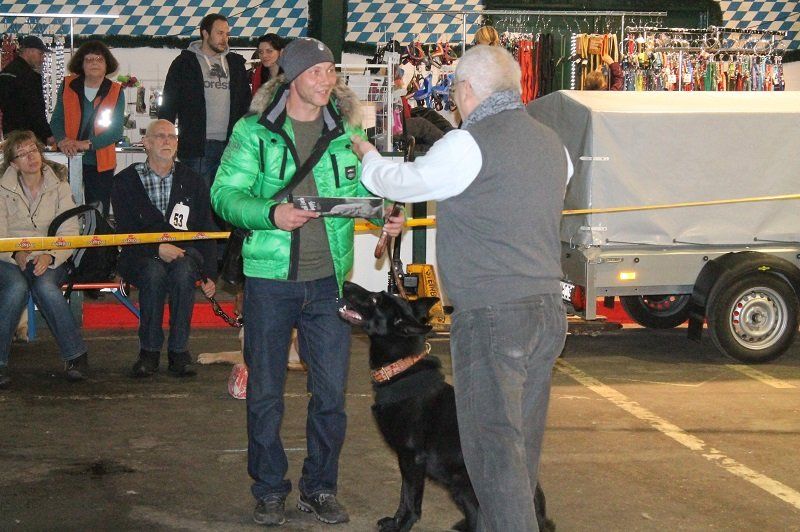 Besonderheit der heutigen Ausstellung war eine Begleithundeprüfung eines osteuropäischen (schwarzen) Schäferhundes, der seine Aufgaben, trotz manch unbekannter und nicht standardmäßiger Trainingsmethode, souverän meisterte.