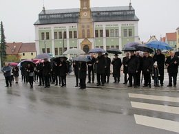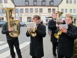 Das Wetter passte zum Thema: leichter Regen vom Einzug der Abordnungen mit Fahnen und Marschmusik bis zum Ende mit Segnung durch Pfarrer Braun. Das Wolnzacher Gebläse spielte auch während des Festgottesdienstes v.a. Schubert. Böller zu Wandlung. Das Gedenken der Gefallenen und Vermissten hat in Wolnzach Format. Pfarrer Braun hatte sich viel Mühe bei der Vorbereitung der Predigt gegeben. Sie reicht von Erinnerungen an die beim Einzug der Amerikaner gefallenen vier Wolnzacher bis zum Überblick über die Kriege seit den Griechen. Gerade die letzten Jahre zeigen durch Terrorismus und Bürgerkriege eine sehr hohe Zahl, mehr als in der ganzen Antike.