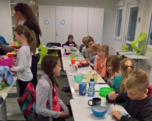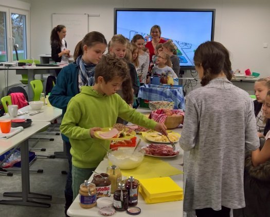 Im zweiten Teil des Projekts bereiteten alle gemeinsam ein großes Frühstücksbuffet vor. Entsprechend der Ernährungspyramide der DGE wurde das Buffet aufgebaut, bewertet und im gemütlichen Beisammensein verzehrt. „Benimmregeln“ am Buffet durften dabei nicht fehlen. „Des mach ma jetzt jede Woche!“, so das Fazit Schüler. Ein gelungenes Projekt, das Lernen mit allen Sinnen umsetzt und den Weg zu einer gesundheitsförderlichen und nachhaltigen Lebensweise ebnet.