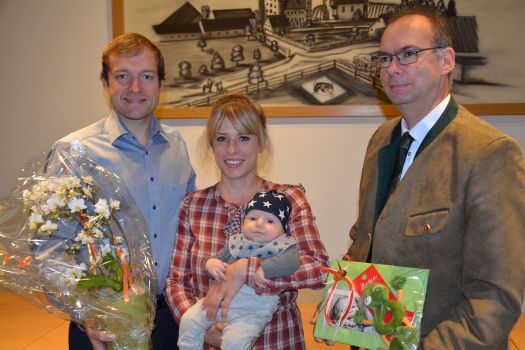 Ja, der Ort wächst; noch am 29.10.1999 konnte Bürgermeister Dieter Huber damals den 5.000 Einwohner begrüßen, der heute bereits 17 Jahre alt ist. Jetzt hat Jonas Grindinger am 31.8.2016 die Einwohnerzahl auf 6.000 gesteigert und Bürgermeister Peter Keck konnte den Eltern Stefanie und Stefan Grindinger nur gratulieren zu ihrem Prachtburschen. Wir schließen uns den Glückwünschen an.