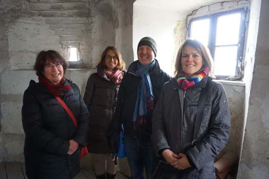 Zunächst warfen sie einen Blick in den Hungerturm, einen von noch drei erhaltenen Stadttürmen von 1400. Der gut erhaltene Turm lässt gut erahnen, wie einst die rund eineinhalb Kilometer lange Stadtmauer um Pfaffenhofen lief und wie die Türme aussahen. Selbstverständlich liessen es sich die Regensburger Gäste nicht nehmen, bis ganz hinauf zu klettern.