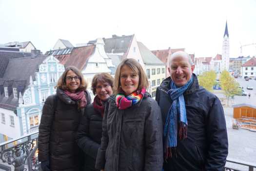Besonders das Neugotische Rathaus begeisterte die Besucher. Der Blick vom Rathausbalkon zeigt die Dimension und Bebauung des dreihundert Meter langen und vierzig Meter breiten Hauptplatzes. Der Blick schweifete über Dächer, alte wie neue Gebäude bis hin zur Stadtpfarrkirche. Die vier bayerischen Könige blickten wie immer würdevoll von ihren Gemälden im Rathaussaal, der ebenfalls interessiert erkundet wurde.