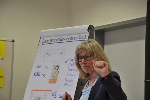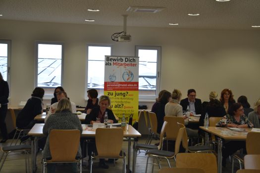 Danach hieß es: Tische frei für die Job-Dating-Gespräche. Die Damen teilten sich nach Interesse auf die acht Tische der Unternehmensvertreter auf, stellten sich kurz persönlich und ihren bisherigen Werdegang vor sowie ihre beruflichen Wünsche. Für die insgesamt drei Gesprächsrunden waren jeweils 20 Minuten eingeplant, die bei Bedarf gelegentlich etwas überzogen wurden. Aber jede der Teilnehmerinnen konnte sich dort einbringen, wo sie ihr Interesse sah. Alle Damen hatten auch fertige Lebensläufe und Bewerbungsunterlagen dabei, die sie bei Bedarf und Interesse des Unternehmens abgaben.