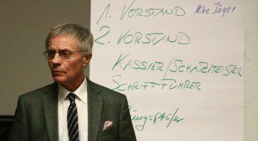 Bernd Huber vom Wirtschaftsbeirat - hier vor der noch nicht ganz ausgefüllten Tafel des neuen Vorstands