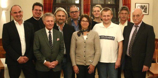 Vorstand mit Initiatoren: Manfred Sterz (Bürgermeister Scheyern), Pater Lukas Wirth (Beirat), Bernd Huber (Wirtschaftsbeirat), Bernhard Stocker (Beirat), Mike Jäger (1. Vorstand), Christine Seizmeir (Schriftführerin), Tanja Weidinger (Kassier), Georg Kreitmair (Kassenprüfer), Reinhold Schmucker (Kassenprüfer, Beirat) und Joachim Reuter (Wirtschaftsbeirat); es fehlt: Wolfgang Inderwies (2. Vorstand)
