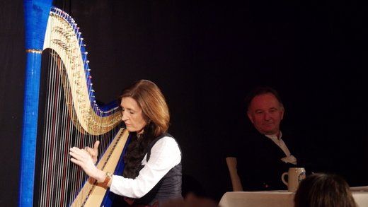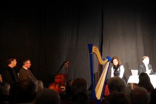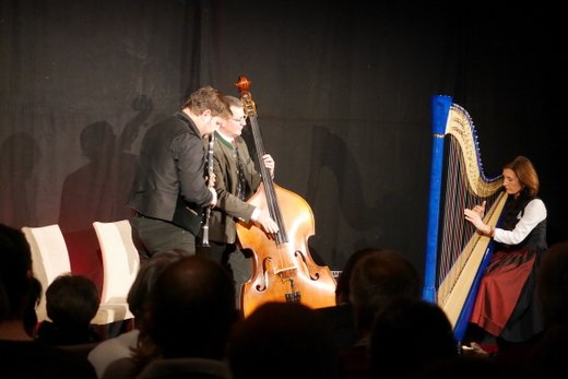 Sicher sind vielen Älteren diese Geschichten noch aus den Verfilmungen bekannt, doch gelesen, bekommen sie noch einen ganz eigenen Zauber. Musikalisch begleitet wurde Michael Lerchenberg von „eberwein" die die Lesung musikalisch mit Grenzgängen in farbige Crossover-Klangwelten aus Polka, Klezmer, Tango oder Jazz umrahmten. Eberwein das sind Marlene Eberwein (Konzertharfe), Matthias Klimmer (Klarinette) und Max Seefelder (Kontrabass).