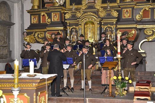 Wie alljährlich wurde zum Ausklang der Feierlichkeit im Schein der Fackeln auf dem Kirchenvorplatz symbolisch die Jagd-Strecke mit einheimischen Wildarten gelegt, begleitet von den Klängen der Parforce- und Fürst-Pless-Hörnern. Die musikalische Gestaltung des Abends gestaltete die Jagdhornbläsergruppe der Jägervereinigung unter Leitung von Hornmeister Ernst Plöckl.