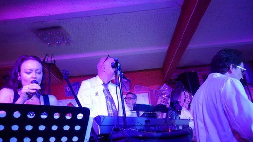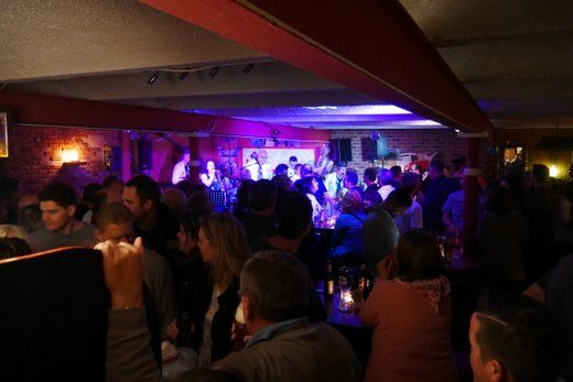 Der Keller war proppenvoll bis spät in die Nacht hinein. Die Flüsterpost via Handy, sorgt heutzutage recht schnell für eine volle Bude, das muss man der Neuen Zeit lassen. Die Musik kam allerdings von und für eine vorhergehende Generation. Fast schon Big Band Sound, was so ein Bläsersatz alles auffüllen kann. Die überragende Liedsängerin Karin Wimmer, weiß aber auch was ihre Pappenheimer hören wollen, „the show is going on“ da braucht es keinen Dollar mehr.