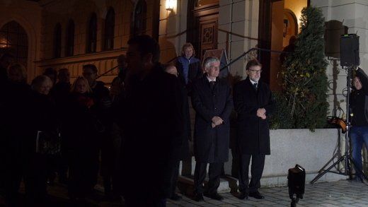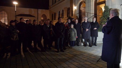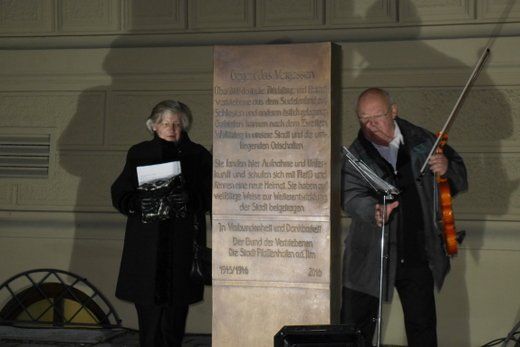 Dem Obmann der Sudetendeutschen Landsmannschaft, Leo Schurius, war es vorbehalten, die Gedenkstele zur gemeinsamen Erinnerung an Flucht und Vertreibung in Pfaffenhofen zu enthüllen. Mit einem gemeinsamen Lied, „Der Lindenbaum“ dessen Noten man auf der Rückseite findet, wurde die Stele offiziell übergeben.