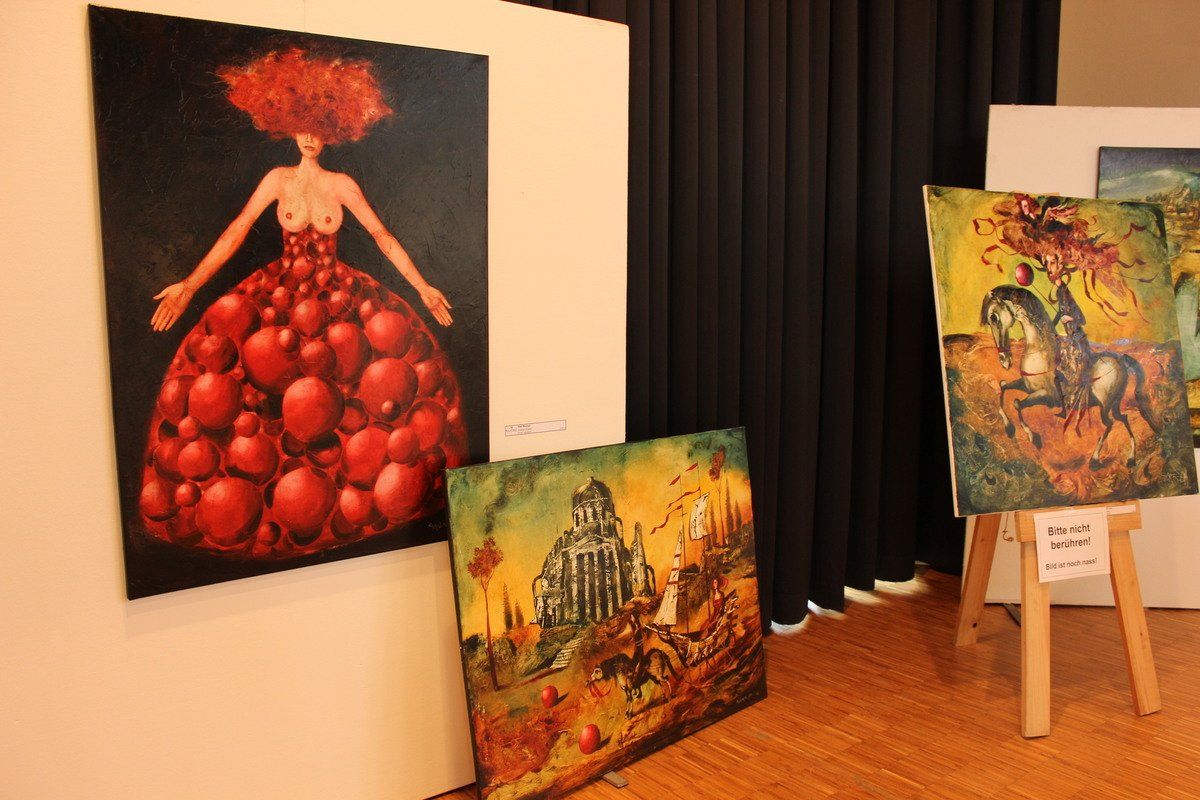 Am Wochenende gab es wieder ausgiebig Gelegenheit zur Inspiration für Kunstliebhaber der verschiedensten Richtungen. In der Stadthalle präsentierte die Volkshochschule zum wiederholten Male die Werke von insgesamt 39 Künstlern aus den Bereichen Malerei, Grafik, Skulptur. Diesjähriger Gastausteller war der ungarische Surrealist, Illustrator und Bühnenmaler András Györfi.