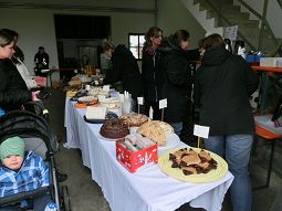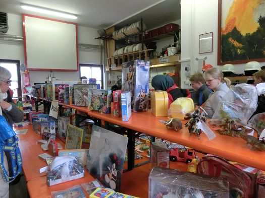 Man wollte es diesmal auch nicht im Kindergarten machen, sondern zog, in Zusammenarbeit mit der Feuerwehr Rudelzhausen, mit den Spielsachen, Büchern, Gesellschaftsspielen, CDs, Fahrzeugen und sogar einem Kickertisch ins Feuerwehrhaus um. Im Bürgersaal daneben wartete ein üppiges Kuchenbuffet, hergestellt von den Müttern und Basarteammitarbeiterinnen, das auch sehr gut angenommen wurde. Leider waren trotz der eigentlich günstigen Zeit - Weihnachten steht bevor - weder besonders viele Listenanbieter noch Kaufinteressenten vor Ort. Dabei wäre es eine äußerst günstige Gelegenheit gewesen, für die Kids verschiedenste Weihnachtsgeschenke zu erstehen und noch dazu für einen guten Zweck: Der gesamte Erlös geht an die Jugendfeuerwehrgruppe Rudelzhausen.