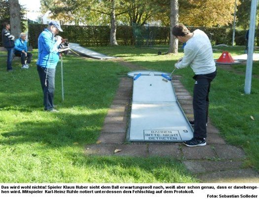 Föhneinfluss sorgte nach einer längeren Kälteperiode, in der vom sprichwörtlichen Altweibersommer nichts zu spüren war, just zur rechten Zeit für fast schon sommerliche Temperaturen und bescherte den Aktiven einen traumhaften Minigolftag. Das Drumherum passte, nur das i Tüpfelchen, der sportliche Erfolg, fehlte noch zu einem rundum gelungenen Tag. Gespielt wurden drei Durchgänge Strokeplay (Zählwettbewerb), die auch für den Vereinspokal gewertet wurden, anschließend folgte die K.O.-Runde (Matchplay). Dieser Modus hatte sich bei der Vereinsmeisterschaft (VM) bereits bestens bewährt.