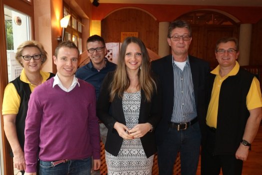 Foto Dancing Angels: Franziska Grüner von Grüner Omnibusse GmbH Rudelzhausen, Klaus Mayrhofer für Elektro Thiermann GmbH Nandlstadt, Anton J. Gebhard für Schuhhaus Gebhard Nandlstadt, Peer Kaiser für KST internationale Logistik GmbH Nandlstadt, 1.Vorsitzender der Dancing Angels Jens-Uwe Klein und seine Stellvertreterin Marianne Kaiser