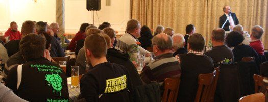Euernbacher Feuerwehr, Jugend und Dorfentwickler lauschen den Ausführungen des Bürgermeisters