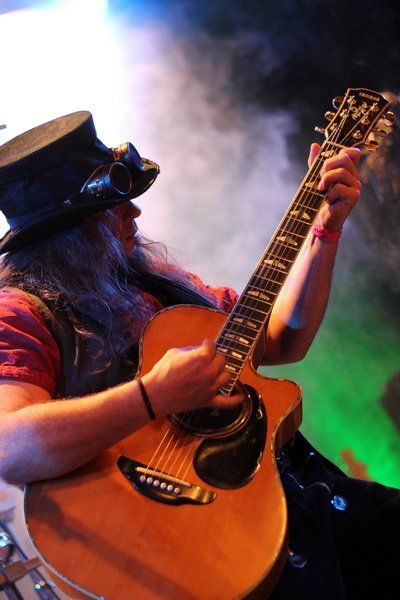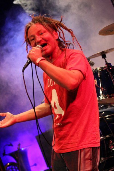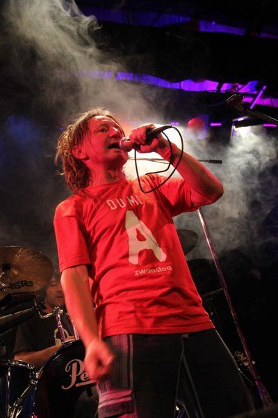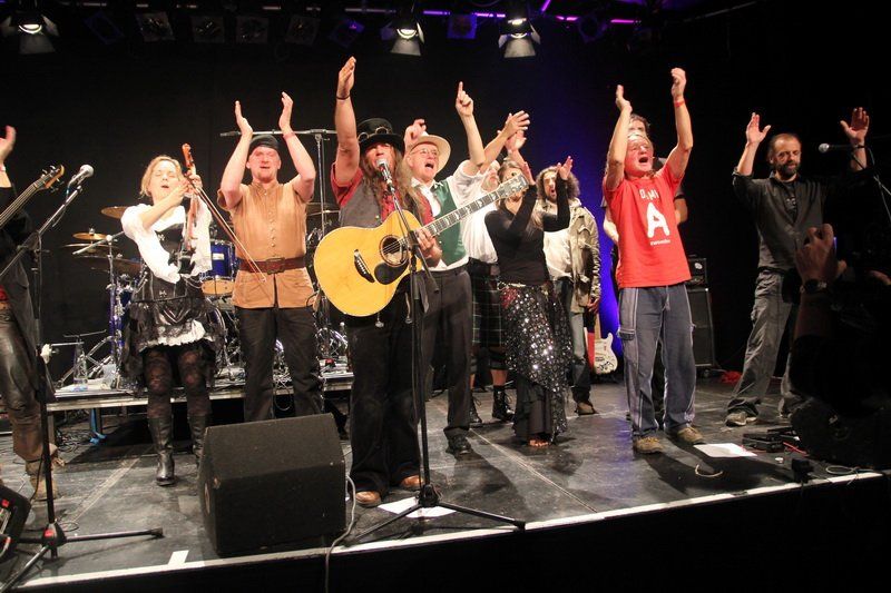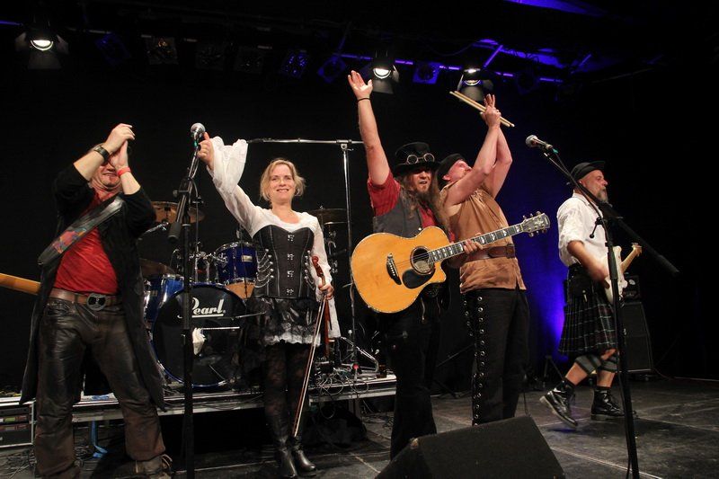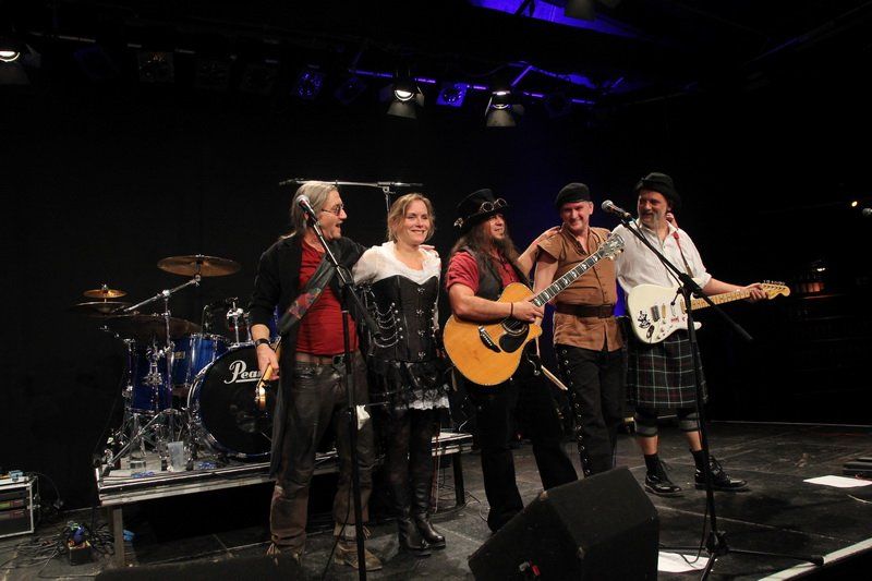 Auch wenn nun so mancher Musiker gerne bei einer „Wiener Melange“ ein Stück dieser Torte genossen hätte, dafür blieb erst einmal keine Zeit, denn schließlich waren die Fans nicht zum Kuchen essen gekommen, sondern wollten es so richtig krachen lassen. Und das ließen sich die Jungs von Zwoastoa nicht zweimal sagen. Mit einer Mischung aus Reggea, Ska und einem gehörigen Maße bayerischer Tradition und Wortwitz, hielt es die rund 400 Gäste nicht lange auf den Stühlen. Abrocken, tanzen oder einfach die Hüfte schwingen und das zu einer Mischung eines satten Sounds einer E-Gitarre und den bayerischen Klängen eines Akkordions.