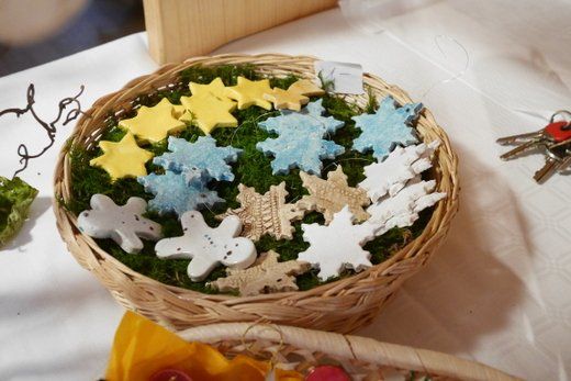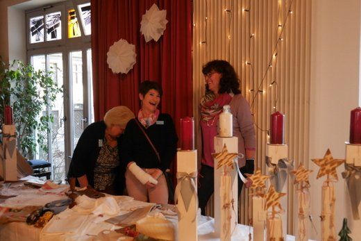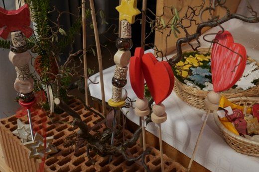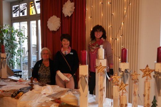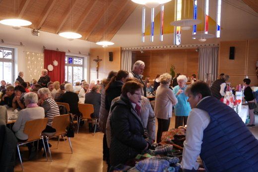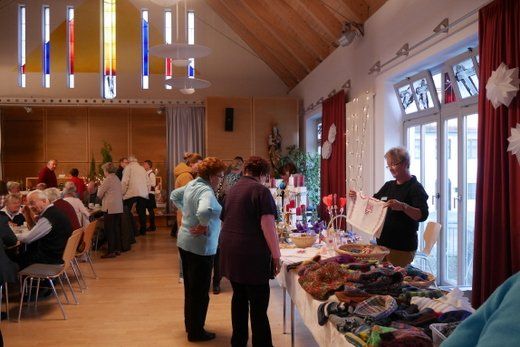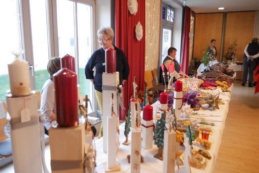 Das ganze Jahr über wird in dem rührigen Verein mit langjähriger Geschichte, für den traditionellen Weihnachtsbasar gestrickt, gehäkelt und gebastelt. Selbstgemachte Marmelade, Likör, Pralinen und natürlich allerfeinste Kuchen gab es dann zum Kaffee unterm Kirchturm. Den ganzen Sonntag war im katholischen Pfarrheim Betrieb, die Geschäfte liefen glänzend.