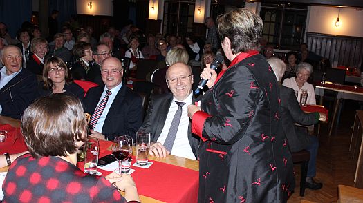 Nach dieser glänzenden ersten Hälfte betrat die Stadtkappelle die Bühne. Von da an übernahm Hannelore Langwieser, die gekonnt humorvoll, charmant und unterhaltsam durch den Abend führte, die Moderation. Roland Hirmer, der sein mittlerweile 11. Jahreskonzert dirigierte, entschied sich als Einstieg für die Polka „Augenblicke“ von Martin Scharnagl.