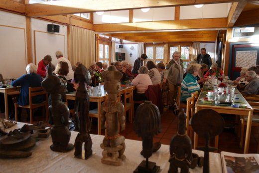 Die Künstlerin Carine Raskin-Sander hielt im gut besuchten Senioren-Café in Pfaffenhofen, einen Vortrag zu dem Thema »Afrika und Kunst« Mit einigen Exponaten Afrikanischer Kunst, vorwiegend Schnitzarbeiten aus der Sammlung Büchner, gab es für die Senioren auch praktische Beispiele zu sehen.