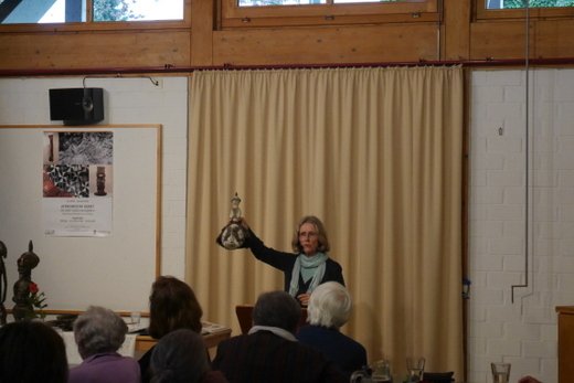 Ein wunderbarer Vortrag, der von der geheimnisvollen Kunst-Welt unserer Nachbarn erzählte. Der Bitte von Carine Raskin-Sander, doch in den hiesigen Büchereien nach afrikanischer Literatur nachzufragen, werden wir gerne folgen.
