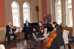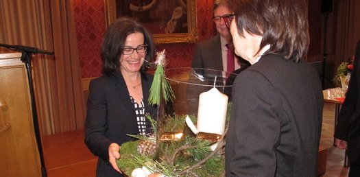 Für die Steuerberater sprach Lucia von Buengner von der Kammer München. Symbolisch erhielten Ehrensberger und Lang von ihr einen Schirm. Im zweijährlichen Stammtisch mit den Steuerberatern kommen viele Anliegen auf den Tisch. Lang ging es immer um Verlässlichkeit und Vertrauen. Bei den Mitarbeitern müsse die Wertschätzung vor allem stehen. Dr. Juptner ging freilich auch auf negative Stimmen über die Finanzämter ein. Steuern seien aber die Grundlage von Freiheit, Demokratie, Rechtsstaat und sozialem Ausgleich. 110 Milliarden Euro gingen 2015 in Bayern Finanzämtern ein. Eine davon aus dem Landkreis Pfaffenhofen. Thomas Herker spielte auch das stets gute Verhältnis mit dem Finanzamt an. Den feierlichen Rahmen unterstrich das Schyren-Quartett (Sauer-Daubner) mit 3 Stücken. Bevor es ans Buffet ging, brachten Mitarbeiter einen Geschenkkorb für Josef Lang und ein Weihnachtskerzen-Arrangement für Eva Ehrensberger herein.