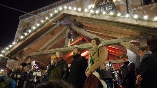 Auf der Bühne am Christkindlmarkt ist für ein täglich wechselndes, abwechslungsreiches Programm gesorgt. Tanzauftritte von „Watch us move“, Musik der Pfahofara Buam und von „Geri & the Wagtails“ sowie das Gastspiel des Drehorgelorchesters bilden einige Höhepunkte im Bühnenprogramm. Schon fast ein „Klassiker“ sind die Auftritte der Turmbläser auf dem Rathausbalkon jeden Donnerstag und das beliebte romantische Engelsspiel an den vier Adventssonntagen.