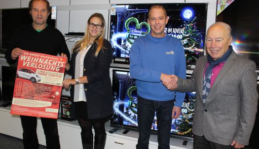 Am heutigen Adventssamstag, den 26. November startet die große Mainburger Weihnachtsverlosung. Wie jedes Jahr gibt es 10 attraktive Gewinne, die bei der großen Endverlosung einen Tag vor Heiligabend vergeben werden. Ganz oben auf der Preiseliste steht ein Smart Forfour aus dem Autohaus Nagel. Mit viel Glück kann man außerdem schon bald ein E-Bike (Zweirad Voit), oder vielleicht einen Flachbildfernseher (Elektro Bachner, Bild sh. unten) sein Eigen nennen.