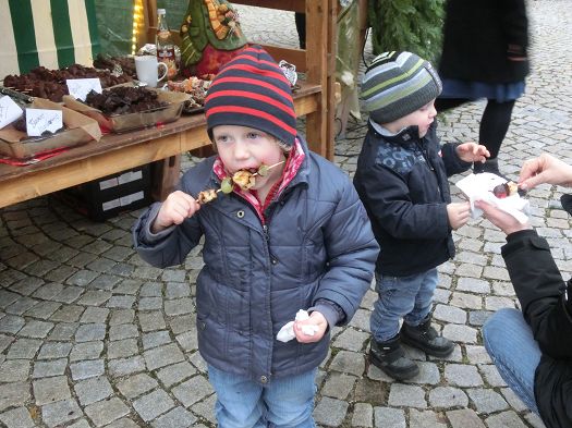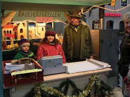 So luden bereits am frühen Nachmittag die verschiedensten Stände mit einem bunten Angebot Groß und Klein zum Bummeln ein, zum Probieren, Kaufen und Schmeckenlassen. Ob geräucherte Forellen, Kuchen, Plätzchen, Würstl, Schokofrüchte - für jeden Geschmack war etwas dabei. Daneben gab es natürlich auch Adventskränze, weihnachtliche Dekoration oder auch Wollmützen.