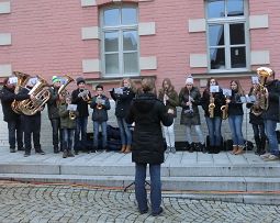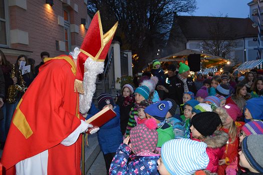 Dazu spielte die Jugendabteilung der Marktkapelle Au unter der Leitung von Verena Bauer weihnachtliche Weisen und verkürzte die Wartezeit, bis endlich der Nikolaus mit seinen Geschenken kam. Dichtgedrängt umringten die vielen Kinder den heiligen Mann, jedes von ihnen bekam ein Geschenk aus seinem großen Sack. Bis in die Abendstunden war auf dem Marktplatz noch ein reges Treiben.