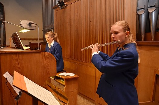 Es folgten unter anderem die Stücke Chorale St. Antoni von Joseph Haydn, Panis Angelicus (mit Solis von Katharina Hofner, Sophia Wendling), Bachs Jesus bleibet meine Freude (Klarinettentrio Christian und Rita Hofner, Florian Schweiger), Solis für Orgel (Sophia Wendling), Flöte (Katharina Hofner) und Trompete (Johannes Wallner, Jochen Kopp).
