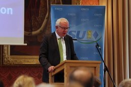 Eine klare Ansage auch nach Berlin. Insgesamt neun Milliarden Euro gibt der Freistaat in den kommenden vier Jahren für die Integration der Asylbewerber aus. „Wenn heute wieder eine Million kommen würde, dann wäre das nicht mehr zu finanzieren“, so die deutlichen Worte des CSU-Politikers, der auch in Richtung Rot-Grün deutliche Worte fand: „Integration muss in die bestehende Gesellschaft erfolgen!“ Kreuzer beschränkte sich hierbei nicht auf das Erlernen der Sprache, sondern stellte Werte – wie die Gleichberechtigung von Mann und Frau – in den Mittelpunkt. Besonders die „linke Meinungsdiktatur“ und sog. „politische Korrektheit“, die eine breite Diskussion über Werte unterbunden hatte, kritisierte er scharf. „Wer glaubt, nur das sagen zu können, was allgemein anerkannt ist, der liegt falsch.“ Aus seiner Sicht ist heute mehr denn je innerhalb der gesellschaftlichen Diskussion Mut gefragt.