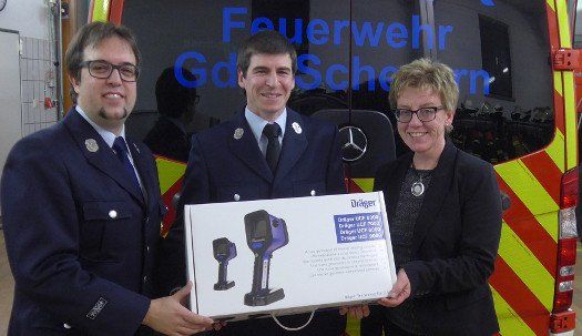 Ein ganz besonderes Geschenk konnte danach der Kommandant der Feuerwehr Scheyern, Tobias Zull, aus den Händen von Scheyerns 3. Bürgermeisterin entgegen nehmen: eine zusätzliche Wärmebildkamera, finanziert unter anderem aus Zuschüssen der Regierung von Oberbayern sowie des Feuerwehrvereins, wurde unter Beifall der Anwesenden überreicht. Somit steht den Floriansjüngern ab sofort auf jedem ihrer Löschfahrzeuge eine solche Wärmebildkamera zur Verfügung. Neben dem schnelleren Auffinden von Personen in verrauchten Bereichen und der unmittelbaren Lokalisierung von Brandherden dient die Wärmebildkamera auch dem Eigenschutz der eingesetzten Atemschutzgeräteträger beim Bekämpfen eines Brandes im Hausinneren.