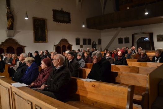 Die ungefähr 50 Zuhörer waren begeistert, auch wenn ihnen kalt war, aber sie waren im Gegensatz zu den Musikerinnen wenigsten warm genug angezogen. Das Programm wurde dann auch ohne Pause gespielt, um die Musikerinnen nicht durch die Kälte zu überfordern. Der Zwischen- und sehr kräftige Abschlussbeifall zeigten den Hochgenuss den das Publikum an diesem kalten Dezemberabend durch die Musik empfand. Zum Abschluss gab es noch kleine Geschenke für die Damen und Joachim Tschiedel durch Stadtrat Peter Feßl.