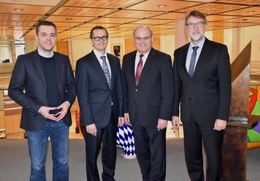 Die Spitze des Verwaltungsrats mit dem Vorstand der Sparkasse Pfaffenhofen (von links): Bürgermeister Thomas Herker, Vorstandsvorsitzender Norbert Lienhardt, dessen Vertrag jetzt um weitere fünf Jahre verlängert wurde, sein Vorstandskollege Stefan Maier und Landrat Martin Wolf. Foto: M. Hailer / Sparkasse Pfaffenhofen