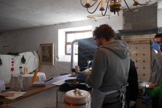 Draußen vor der Tür brannte am Abend das Feuer, um das sich auch viele Tegernbacher bei selbstgemachtem heißen Honigwein wärmten. Kasperletheater für Kinder wurde im kleinen Stall gespielt und spannende Märchen erzählt. Nach Einbruch der Dunkelheit hallten Trommelklänge durch das Dorf und eine spannende Feuerschau verzauberte die Raureife Landschaft.