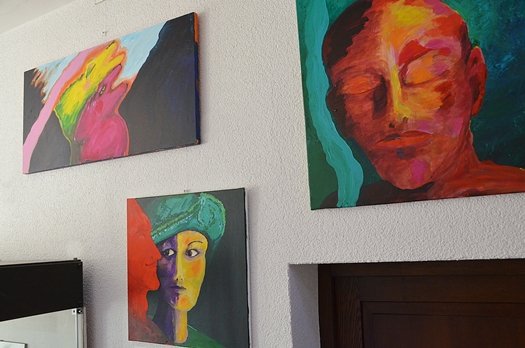 Doris Bark-Greil bedankte sich auch im Namen ihrer Kolleginnen für die Möglichkeit erstmals mit den Bildern an die Öffentlichkeit gehen zu können. „Wir sind alle sehr aufgeregt“, so die Künstlerin. „in den Bildern ist Ureigenes enthalten“ und man habe damit viel von sich selbst herausgegeben. „Das Tun aber ist das Wichtigste“, so die seit 2002 im Reichertshofener Ortsteil Starkertshofen lebende Bark-Greil. Ihre Arbeiten kennzeichnen die Verwendung kräftiger Farben und starke Kontraste in gemischten Techniken.