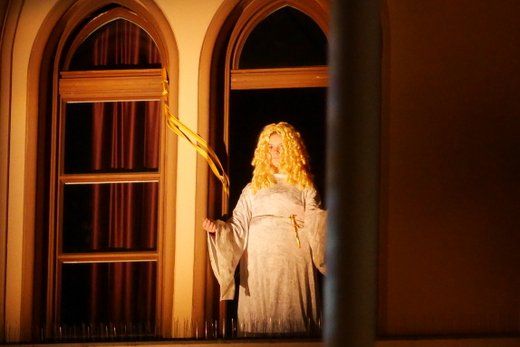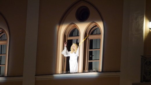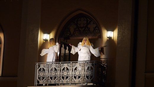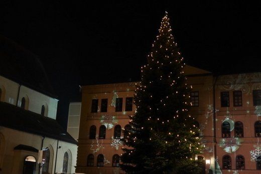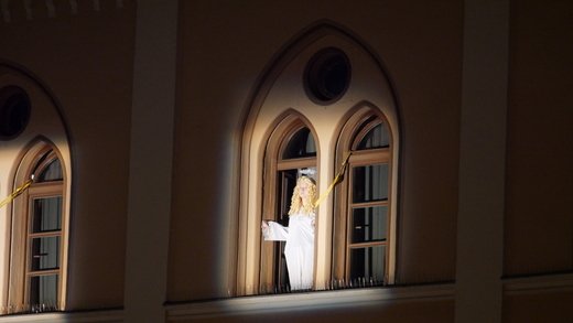 Ob jetzt das „Ave Maria“ oder am letzten Wochenende „Stille Nacht“, stets hatten die Veranstalter bekannte Sopranistinnen für diese, nicht ganz so einfache Aufgabe, gewinnen können. An diesem Sonntag aber war anscheinend der Wurm drin. Als Sängerin stand Robin Whittaker, staatlich geprüfte Chor- und Ensembleleiterin, Gesangslehrerin und Frontfrau verschiedener Bands, im Programmheft. Zwanzig Minuten nach Sechs begann das Spiel, mit der bekannten Choreographie der Engel. Doch als das Christkind auf dem Rathaus Balkon zum Solo auftaucht hörte man nach einer kurzen Pause, nur Gesang aus der Konserve.