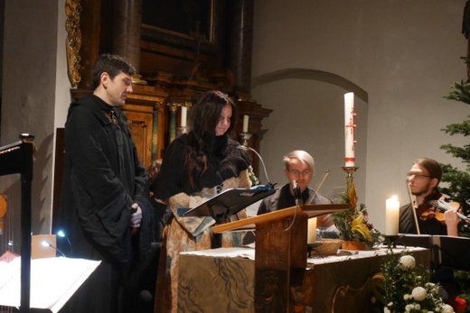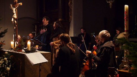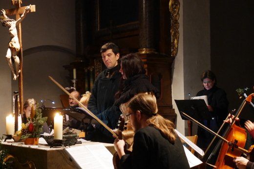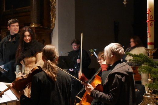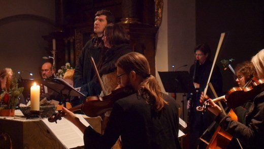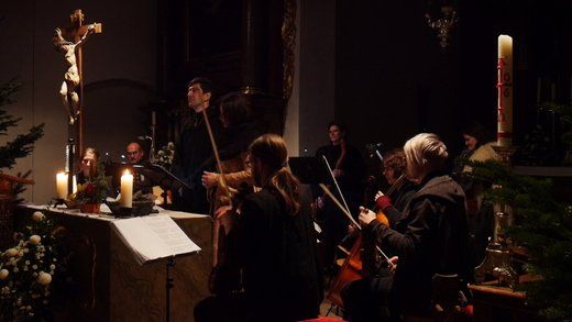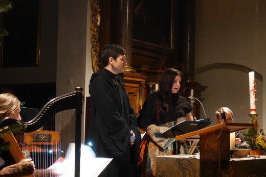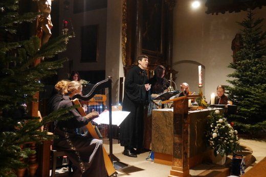 Ein ganzes Orchester spielte in diesem Jahr, frisch vom Studio, fanden einige neue Stücke das erste Mal den Weg in die Öffentlichkeit. Das festliche, weihnachtliche Ambiente im Altarraum der alten Spitalkirche, gab die schönste Bühne für die Mondsänger. Unter Marienbildern konnte der Weihnachtsvollmond dann auch entsprechend gefeiert werden.