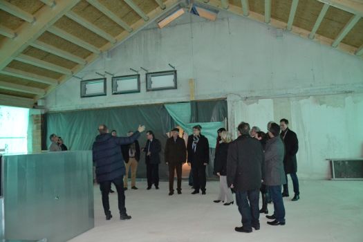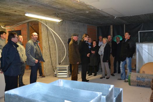 Denn bevor sich alle Ausschussmitglieder setzen konnten, hieß es erst einmal, Jacken anziehen und raus auf den Rohbau des Landratsamtsgebäudeteils A um sich dort den geplanten Sitzungssaal sowie draußen die Vorschläge der Architekten für die Fassadengestaltung anzuschauen.