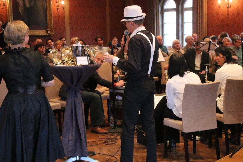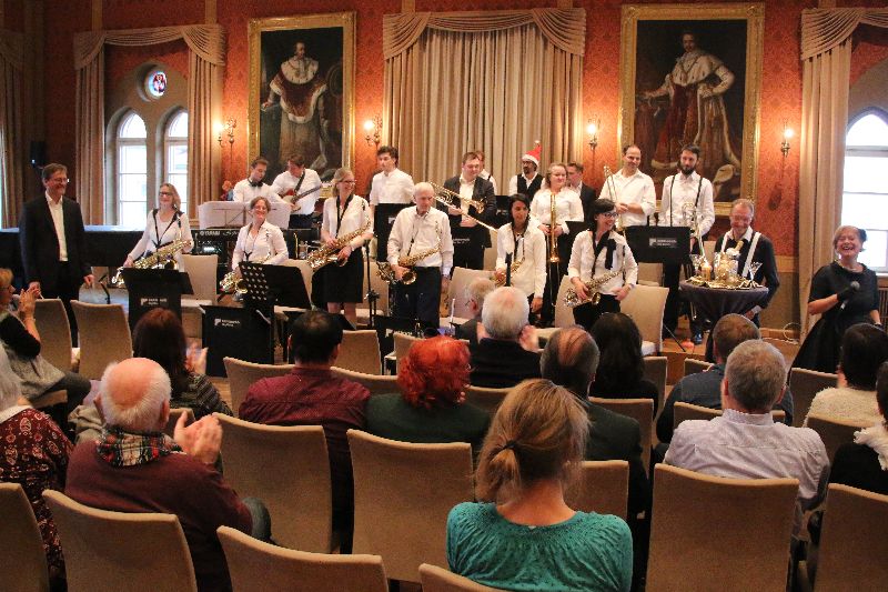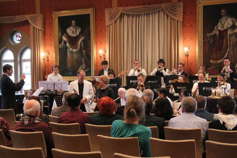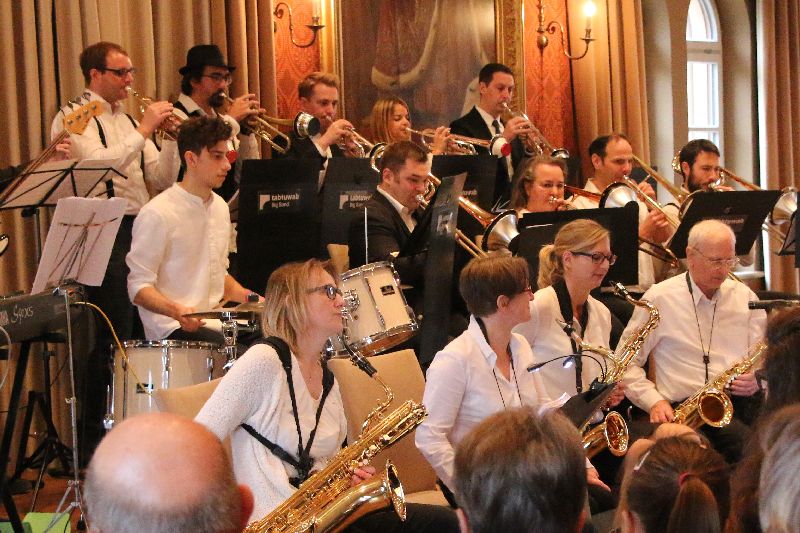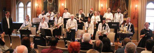Gott sei Dank, möchte man sagen, dass diese beiden Musiker sich dem Ensemble angeschlossen haben, denn nur so kommt auch das hiesige Publikum in den Genuss der Auftritte. Das Repertoire des Orchesters gleicht einem Querschnitt durch die Nachkriegsgeschichte des Swing, Chicago Jazz und Easy Listenings. Glenn Miller, Cole Porter, Frank Sinatra, Dean Martin oder Duke Ellington - sie alle fanden ihre ganz persönliche Hommage in diesem beeindruckenden Konzert. Doch es ging noch darüber hinaus: moderne Songs wie der "Soul Man" aus dem Blues Brothers-Film oder Peter Herbolzheimers "Defunk Motel" zeigen die ungemeine Bandbreite der Musiker unter Leitung von Markus Schubert. Ergänzt werden die Bläser durch eine "Electric Band", die mit den Keyboard und Gitarren-Riffs bei "Green Onions" so richtig zur Geltung kommt. Wer hätte schon die Orgel-geprägten Booker T & The MG's bei einem Big Band-Konzert erwartet?