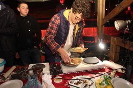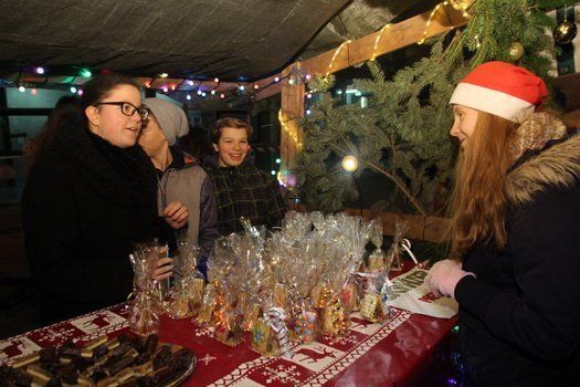 An 13 Ständen konnten sich die unzähligen Besucher begeistern lassen. Lebkuchenhäuser, Weihnachtsschmuck, selbstgebackene Plätzchen und sogar kleine Schneemänner waren dort zu finden. „Es freut uns, dass wir auch in diesem Jahr wieder viele unterschiedliche Stände haben“, erklärte Schülersprecherin Marie Hartmann. Was alle Verantwortlichen aber noch mehr freute war der Zuspruch der Besucher. Viele waren gekommen, um dieses einzigartige Flair zu erleben und natürlich auch um bei durchaus winterlichen Temperaturen sich an einer heißen Tasse Punsch oder den Feuerstellen zu wären, während man den fast schon „steinzeitlichen“ Weihnachtsklassikern von Lea Hölz, Jakob Seitzl und Christian Kuttler lauschte.