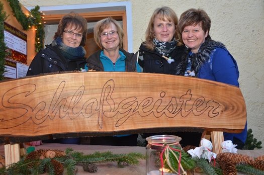 „Durch eine spontane Inspiration beim Genuss eines ‚Winterhugos‘ kam uns die Idee, dass wir sowas auch in Reichertshofen anbieten könnten", erzählt Dauer die Entstehungsgeschichte. Gesagt, getan: gut zwei Wochen später bezogen die „Schloßgeister“ zunächst eine Garage im Schlosshof und stellten dort lediglich einen weihnachtlich geschmückten Biertisch auf. Seit 2015 haben sie ein eigenes, ansprechendes und stets hübsch dekoriertes Standl aus Holz. Bauhofmitarbeiter Christian Röckl fertigte es in seiner Freizeit für die Damen extra an. Das hat sich durchaus gelohnt, denn für Gäste des Christkindlmarktes ist es ein beliebter Treffpunkt zu einem Glas „Winterhugo“.