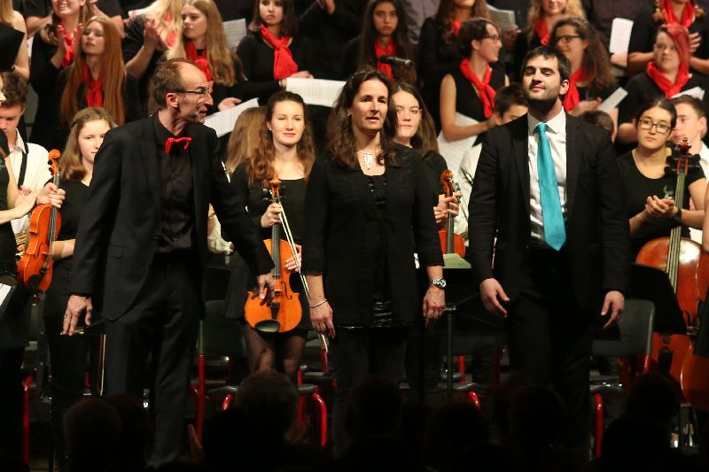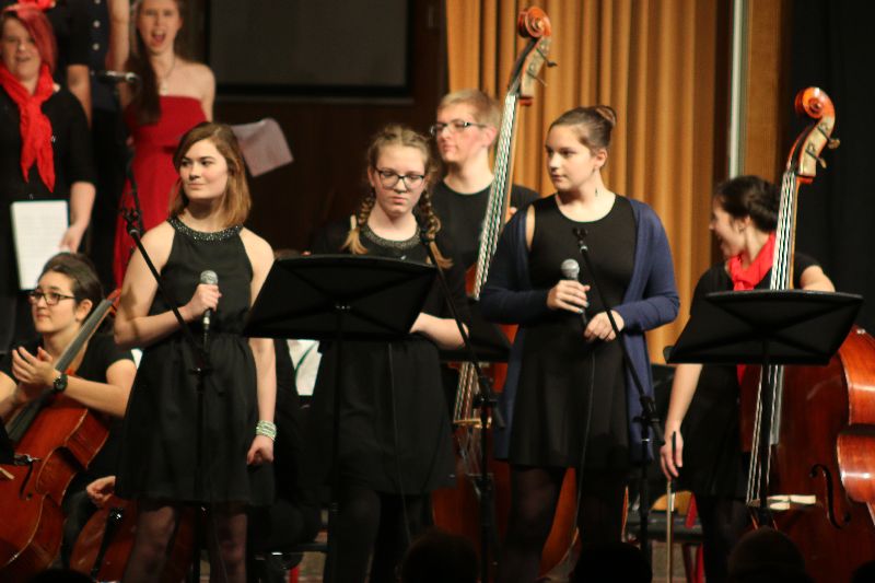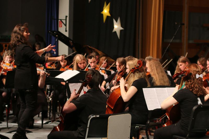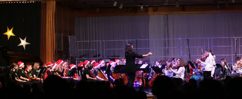 Vororchester und das große Orchester (Christiane Sauer) sorgten gemeinsam mit dem Chor für die Höhepunkte zum Abschluss des ersten Konzertteils; neben traditionellen Stücken in speziellen Arrangements der musikalischen Leiter gab es vom Orchester Auszüge aus Tschaikowskys "Nussknacker" und das Thema der Kult-Fernsehserie "Game of Thrones"