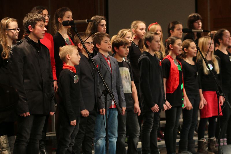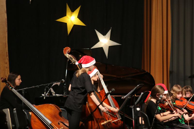 Den Anfang im Programm machten die Streicherklassen 5a+6a, die unter der Leitung von Stefan Daubner mit zwei vorweihnachtlichen Stücken den abwechslungsreichen Abend einleiteten. Der Unterstufenchor von Judith Jung sorgte mit "Nearer my God to thee" für die erste Vokalnummer des Abends, bei der das Publikum in der wirklich rappelvollen Aula von einem Echo-Chor am entgegengesetzten Ende der Bühne überrascht wurde.