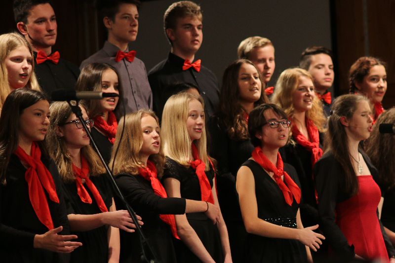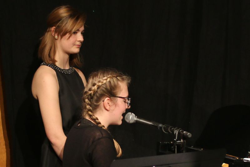 Zwei Schülerinnen hatten zwischendrin ihre ganz persönlichen Höhepunkte vor einem geschätzt 600 Personen zählenden Publikum: Luisa Dietsch mit "Broken Heart" und Pia Huber mit "Thank You" stellten eigen-komponierte Songs vor, und das mit einer schon fast unglaublichen Routine angesichts dieses großen Auditoriums. Eine gewisse Nervosität war bei beiden ganz sicher vorhanden, aber die ist nur zu verständlich und die haben auch große Superstars; die Performance der beiden Sängerinnen wurde mit einem großen Sonderapplaus honoriert.