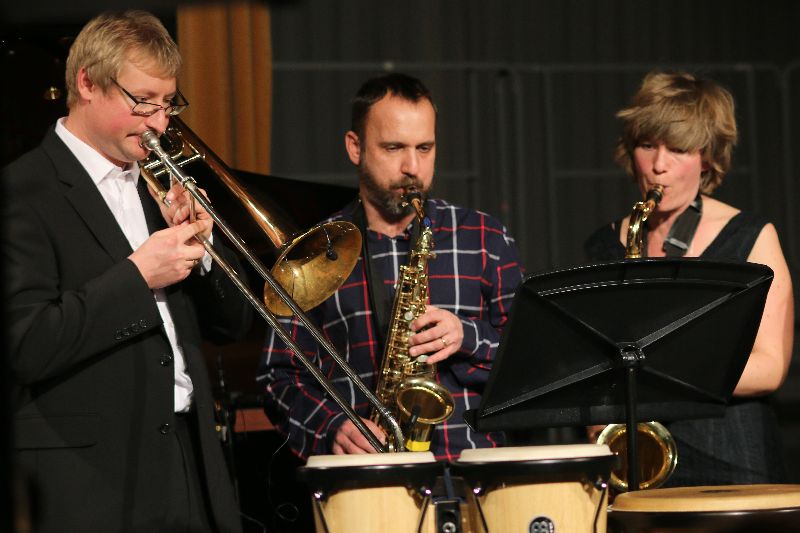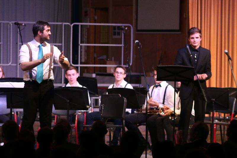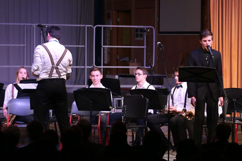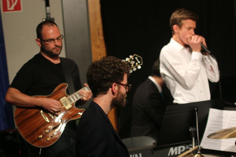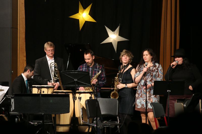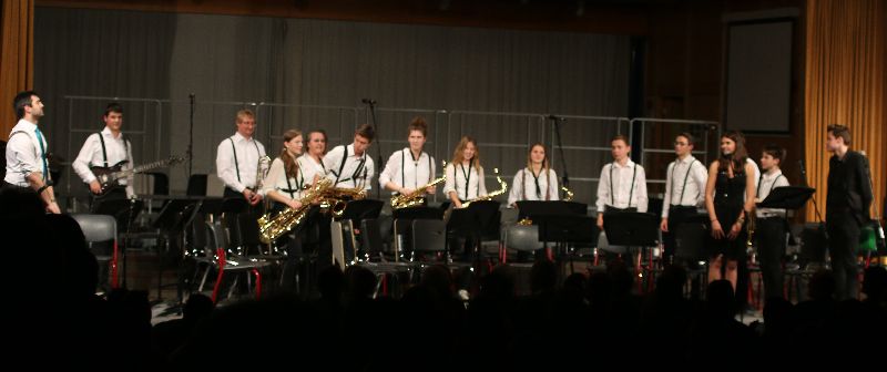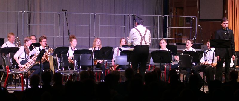 In gewohnter Weise baute sich das musikalische Spannungsfeld nach der Pause sukzessive auf: die Big Band gab zunächst Kostproben aus dem Musical "Little Shop of Horrors", das im Sommer 2017 zur Aufführung kommen und für das schon eifrig geprobt wird; die Lehrerband stellte mit "Proud Mary" und "Mustang Sally" ihre musikalischen Qualitäten unter Beweis.